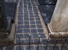 Наземное покрытие могилы гранитной брусчаткой,